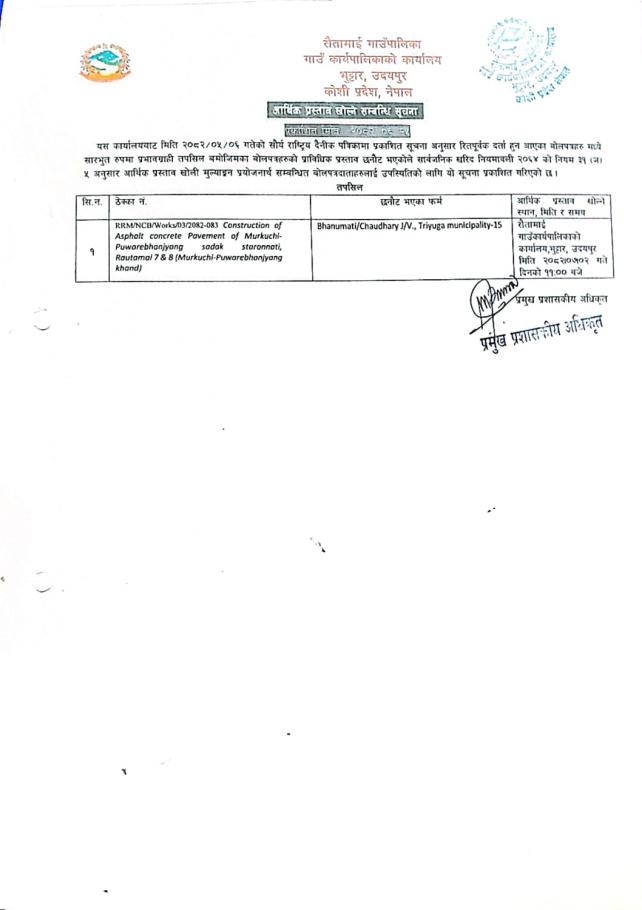 आर्थिक प्रस्ताव खोल्ने सम्बन्धि सूचना!!!