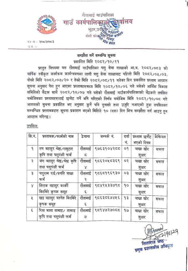 सम्झौता गर्न आउने बारे सूचना!!!