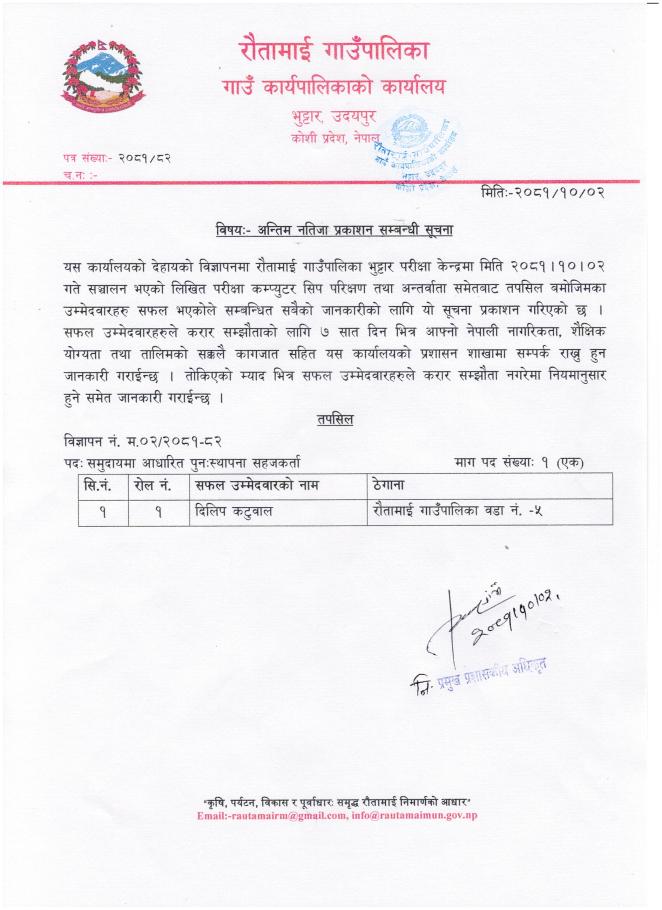 अन्तिम नतिजा बारे सूचना!!
