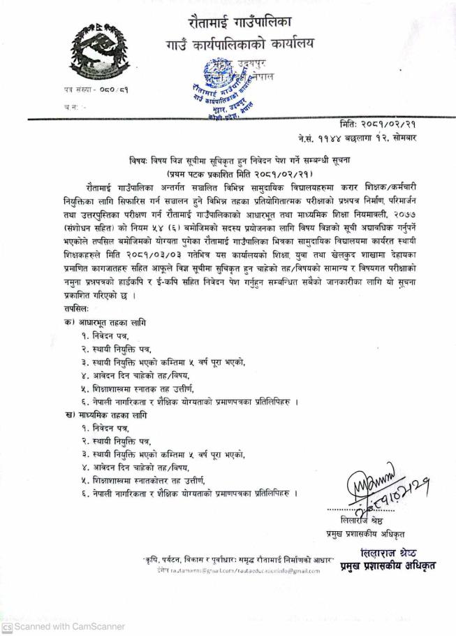 विषय विज्ञ सूचीमा सूचीकृत हुन निवेदन पेश गर्ने सम्बन्धी सूचना!!!