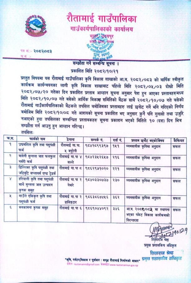 सम्झौता गर्न आउने बारे सूचना!!!